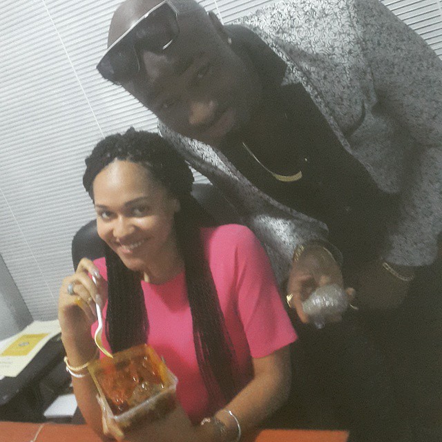 Five star music star, Harrysong shared this photo of Wizkid’s beautiful girlfriend, Tania Omotayo enjoying Amala for lunch.